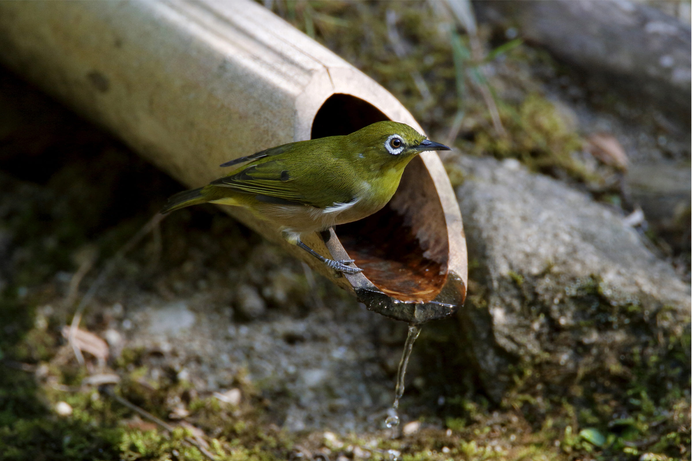 メジロは虫も木の実も食べ、さまざまな花の蜜も好みます。ハワイミツスイと呼ばれるハワイ固有の小鳥の仲間は、すでに何種もが絶滅しています。固有の花に特化した進化をしてきたと思われる種もいましたが、食性の幅が広いメジロに追いやられたものがいたかもしれません。