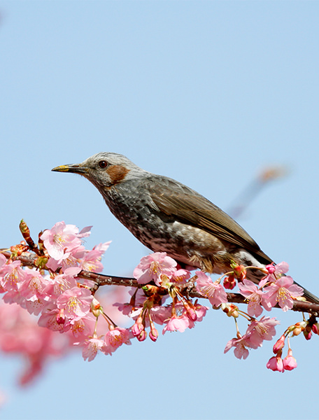 オスは渡り途中からさえずりはじめますが、他の鳥の鳴き声と聞き比べないと判別は難しいでしょう。そこで、身近な場所で日頃からよく鳴いているヒヨドリの鳴き声に注意して聞くことをおすすめします。笛に近い音色は似ていますが、ヒヨドリは典型的なさえずりがなく、春でも単純な鳴き方が多いので、複雑な鳴き方をしていたらヒヨドリ以外であると考えられます。弾む感じで繰り返しがあればキビタキ、伸ばす声を交えてのびやかなさえずりであればオオルリの可能性があります。